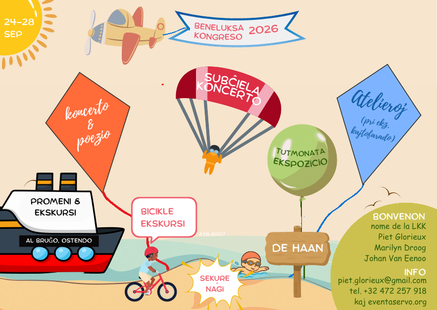 - 2026-09-24 ĝis 2026-09-28 okazos en De Haan la Beneluksa Kongreso 2026